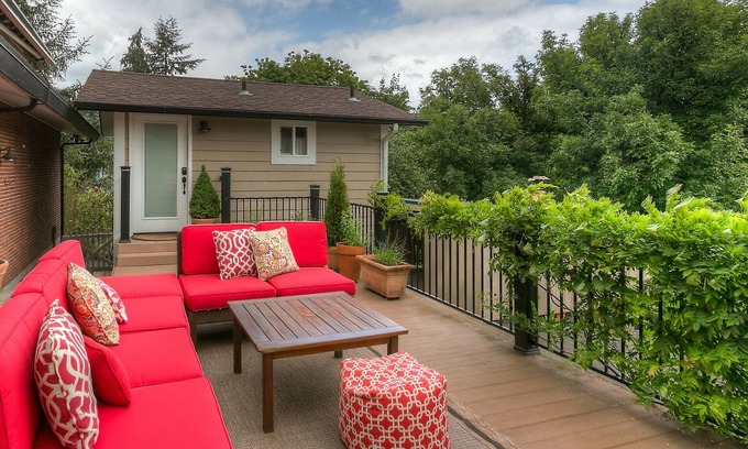 The cottage is a private retreat where you can relax and take advantage of the special features of the property, including Willamette River frontage, Hot Tub, on-site driving range, fantastic birdwatching and stargazing, plus lots of comfortable outdoor seating on our three decks, and an outdoor firepit. You can even charge your EV (metered, Level 2 - J1772 and NACS plugs available). Parking space is available for up to two cars and secure storage space for your bikes or kayaks is available upon request.