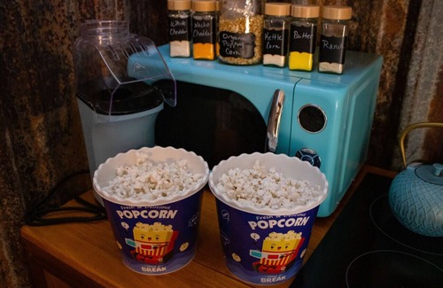 🍽️ Full-size fridge, 2-burner stovetop, air fryer, toaster oven, waffle maker, blender, & more