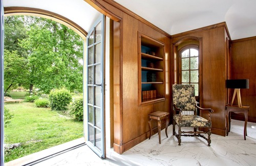 The Farmhouse’s renovated interior delicately balances history with splashes of modern comfort. Its spacious living room (a surefire meeting place for parties of all sizes) houses regal antique furniture within arm’s reach of a formidable collection of well-worn books. Its maze of historic bedrooms—[2] of which are en suite, and each of which features its own fireplace (around since the property’s construction) and plush size bed—promises privacy to you and your guests. (Be mindful, though, that many of the Farmhouse’s bedrooms are accessible only via stair.) History takes a backseat, though, when it comes to the property’s modern comforts, including its 3 remodeled bathrooms, sound system, cable TV, and [etc.] A highlight of the property’s recent redesign, the Farmhouse’s kitchen, with sleek lines framing recently installed, modern appliances and a nook for morning coffee or an afternoon charcuterie board, is a bright spot for any aspiring French cook. As one guest described it, everything you want to be classic is classic, and everything you want to be modern, modern.