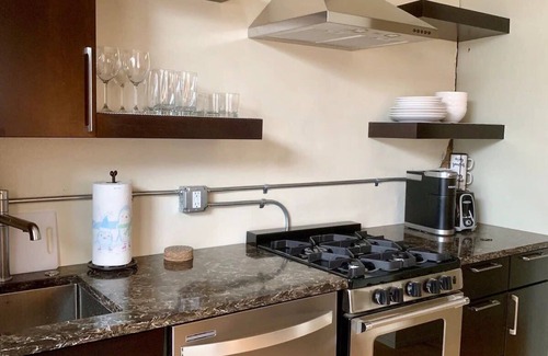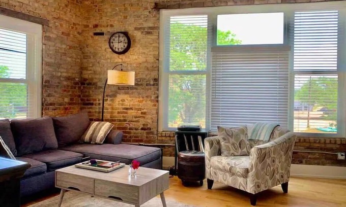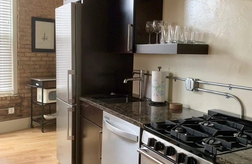 Located above the area’s hottest new restaurant, this newly renovated 1BR/1BA urban loft features classic finishes - exposed brick, high ceilings, maple floors, and quartz countertops. Cozy, comfortable quarters directly above the Houndstooth restaurant provide a fantastic opportunity to get a “taste” of the Benton Harbor Arts District. Muffled sounds of music and activity from the restaurant below are often present in the loft during evening hours. Some guests may find this objectionable.