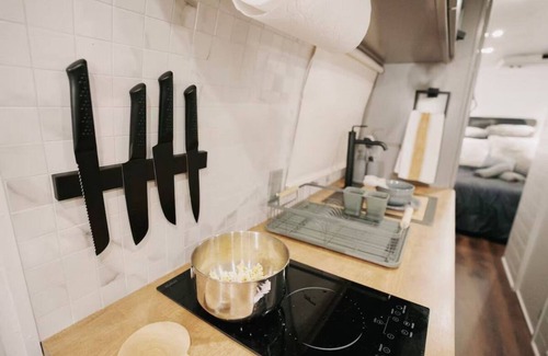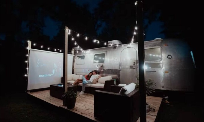 This beautifully renovated Airstream offers a unique retreat, perfect for a romantic getaway or any special occasion. Nestled in a scenic spot, the exterior gives way to a cozy, luxurious interior. The Airstream features all the modern amenities you need, including a compact kitchenette and a chic, spa-like bathroom, ensuring comfort and style. Step outside to a private deck with a fire pit, where you can stargaze and enjoy an outdoor movie, creating unforgettable memories under the night sky