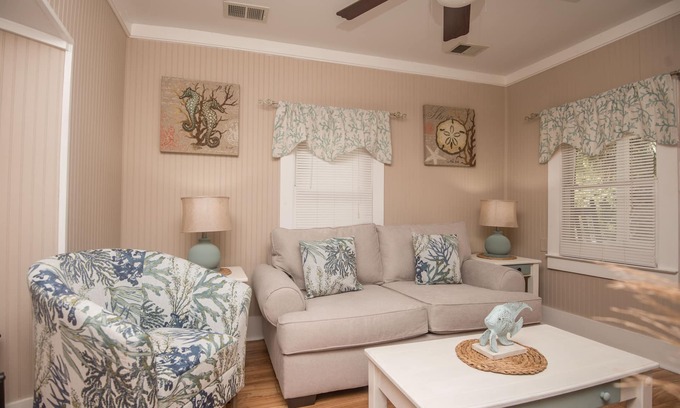 This beautifully decorated cottage was completely renovated June 2022 and is in heart of the National Historic District of Beaufort and only a 10 minute walk to downtown shops and restaurants. The cottage is also close to Paris Island Marine Corps Station.