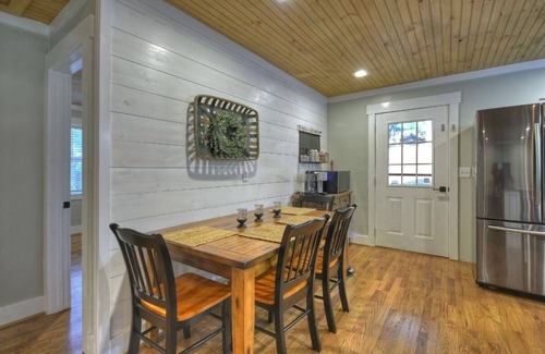The large front porch and classic porch swing are the first welcome to Blue Ridge Farmhouse and it just gets better from there. Hardwood covers the main floor space with a warm area rug in the living room. You can turn on the gas fireplace and cozy up with a throw blanket or enjoy the reclining leather sofa with some television.