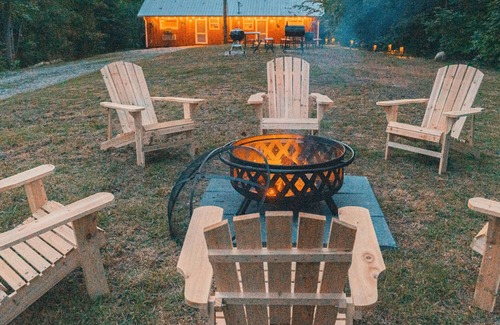 The main outdoor recreation area is a good sized private lot at the front of the house (we own the lot but have not built upon it to give our guests room to enjoy being surrounded by nature). It is a very useable outdoor space, cleared but surrounded by trees for privacy. The property is secluded amongst the woods on a bluff near the top of a hill hidden from sight from our rural neighbors. Enjoy the fire pit, charcoal grill (wood/charcoal is not provided), and outdoor eating area! Most of all, enjoy the starry nights... it's a pretty dark sky in this area so enjoy!