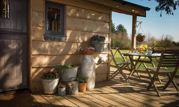 Cedarwood is inclusive of linen and towels, electricity and heating, open wifi, logs for the little wood burner, free-range eggs from our hens and ducks, and a Smart TV with Netflix. Outside is a fire pit and an ample supply of logs if you wish to enjoy the peace and quiet of a night sky with no light pollution. You also get total privacy, rural views, a large L shaped deck, a private car park, and your own garden and little wood all to yourselves…