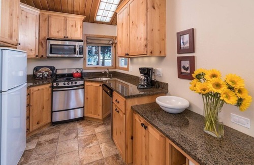 The main living area is an open-concept living/dining and kitchen area with a cozy wood-burning stove, large, flat-screen TV and DVD. The large master bedroom has a king bed with attached full bath. The second bedroom has a queen bed and attached full bath with high thread count luxury linens, shampoo, conditioner, soap and hairdryers. Each bedroom has a full closet. Each bath has beautiful Italian ceramic tile and granite counter tops. There is a washer & dryer with laundry soap provided. For your first morning we provide a continental breakfast consisting of scones, yogurt, and our own farm fresh eggs (uncooked).