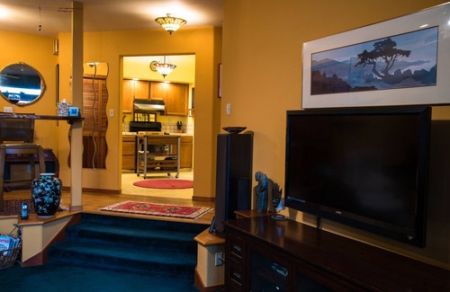 The Living room is on deck level which is only 3 steps down from the rest of the house.