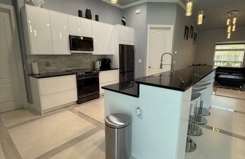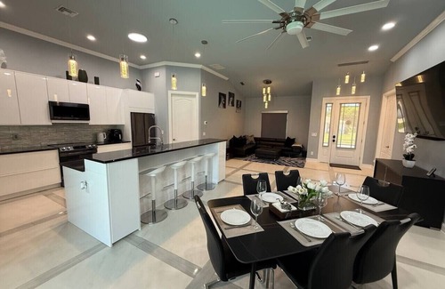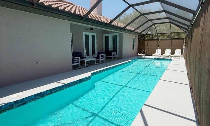Welcome to our stylish and charming 4 bedroom, 2 bathroom house is located in South Venice Florida! Our beautiful house with a heated saltwater pool is located in a quiet neighborhood in Venice close to beaches, restaurants and entertainments .The open floor plan can accommodate 8 guests comfortably. Upon entering, you connect the spacious great room, fully equipped chef's kitchen, bar and dining area. Also a living room aria perfect for relaxing evenings with family and friends.