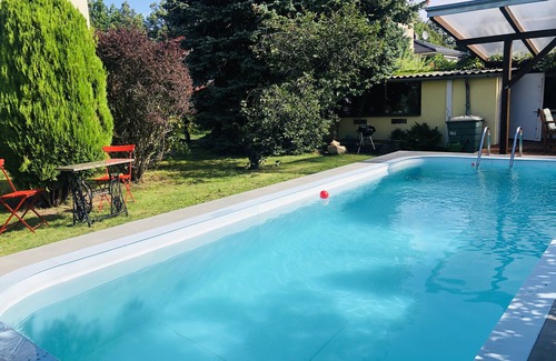 The apartment is located in one of the best sites of Görlitz. From the area called Biesnitz, you reach the center as well as the surrounded nature in a few minutes. You live in a mixture of modern design and antique furniture. You have access to the lovely garden with swimming pool and barbecue facilities.