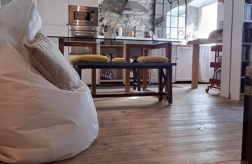 Romantic full-height attic with exposed stones and beams in every room and scenic bedroom with mezzanine and glimpse of the sea. Located in a residential area, with a green park and Art Nouveau buildings where at no. 1 lived the writer James Joyce.