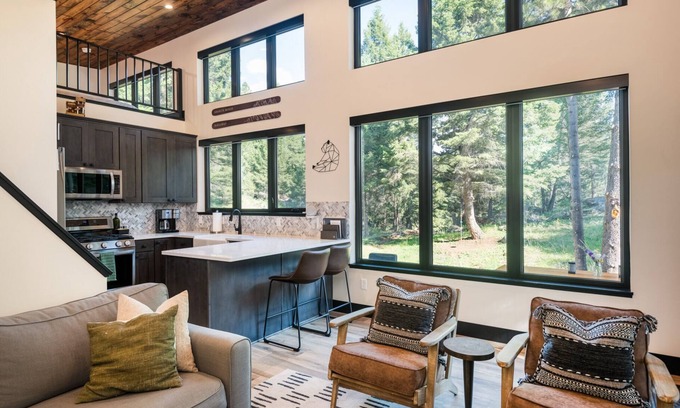 Welcome to the Granite Moose Hideaway—your tranquil mountain cabin retreat where modern comfort meets peaceful seclusion. This beautifully decorated 600 sq ft guest cabin is ideal for couples or small families seeking a relaxing escape to ski, hike, or unwind. Featuring a king bed in the master, two queen beds in the loft (note: 4-foot ceilings), and a private hot tub, it’s the perfect base for adventure or rest. Winter: roads are plowed; 4WD/AWD recommended for snow/ice.
