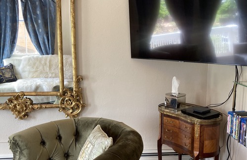 One-of-a-Kind Romantic 3 Bedroom / 2 Bath Apt. Located in Historic Landmark Mansion @Cheesman Park. Beautifully renovated, high ceilings, luxe finishes, with exceptionally spacious layout on 3 floors. Has 2 very large bedroom suites, each with a full bathroom (tub and shower). And another smaller bedroom with a private balcony. Living / Dining great room is ideal for hanging out and lounging -- and has an extremely large flat screen smart TV. Each bedroom also has it's own large flat screen TV! + Our services are what you expect in top-tier hotels (housekeeping, catering). Eat-in Kitchen, and Wet Bar, with stovetop, microwave, under-counter refrigerator, & all essentials. FREE Premium Cable service is included with on-demand streaming and hundreds of movie channels +FAST FREE Wifi, & unlimited FREE on-street PARKING for you & your guests!