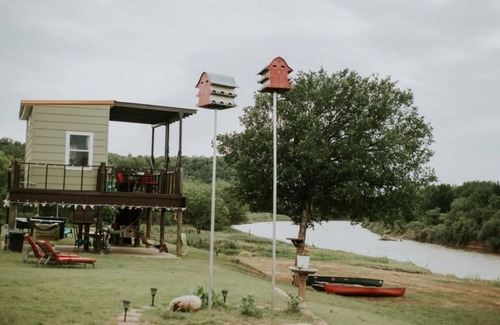 Unplug and recharge at this charming Riverfront Cabin for two. Perched up on the Water with an upper Deck and a breezy outdoor patio below, this retreat is made for lazy mornings, golden hour sunsets, and quiet nights under the stars. A perfect couples getaway where the river is your back yard.