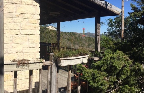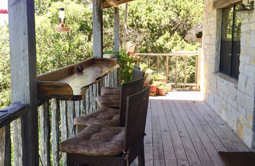 La Casita is the perfect place to escape from the ordinary. This expertly built, white rock cabin is a private guest house to a spectacular estate high in the clouds, yet only 5 minutes to the Frio River. Plenty of parking in the circular driveway, you walk along an elevated pathway and immediately be taken in by the sheer beauty of the mountain range and the Frio River below your private covered deck. There's a BBQ grill and burner on the deck for making meals, or just sit on the comfy bar stools with a glass of wine and take in the dramatic views.