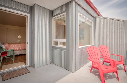 Imagine soaking in a bayfront jetted tub, gazing at the sea as sea lions bark, gulls sail overhead, and fishing boats troll into the harbor. That dream can come true with a stay at Surfer Dude, a charming upstairs studio on Newport’s busy Bayfront. A cozy gas fireplace beside the ocean-view queen bed only increases the romance. The bathroom counter is fashioned from a surfboard, reminding you that the beach is less than a mile away. Enjoy coffee, snacks, and takeout from the closet kitchenette with its microwave, coffee station, and mini-fridge.