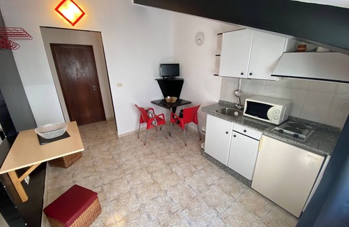 studio apartment located all within the same building in a private area consisting of a double room with a small separation, living room with kitchen and bathroom.
