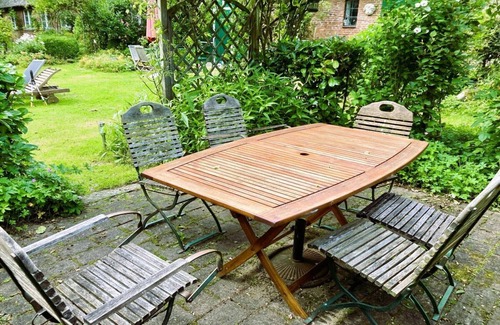 Our holiday home is located in the beautiful region, a gentle hilly landscape, embedded between the North and Baltic Sea. The 200 -year -old farmhouse consists of a residential part (150 m2), a barn (50 m2) and the former stables. The spacious, bright living rooms are lovingly furnished with antique furniture and beautiful pictures. There is a spacious living and dining room with a tiled stove, three large bedrooms with their own bathroom each, another single bedroom and a fully equipped kitchen. The property (approx. 3000 m2) is completely fenced, with rose garden, playground, barbecue area, cozy seating area, old fruit trees, a small forest and a fenced pond. Garden furniture, parasols and sun loungers are available. When it rains, the large barn offers a lounge with a seating area and play area for the children. The direct environment invites you to hikes in nature and bicycle trips. We s