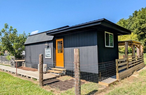 The Little Black Barn: our premier glamping unit is waiting for you! Private Sauna, Private Outdoor Tub and Outdoor Shower with Endless Hot Water, Hammock Chairs, BBQ Grill... and all of these in your own Private Patio surrounded by our Tiny Goat Corral!