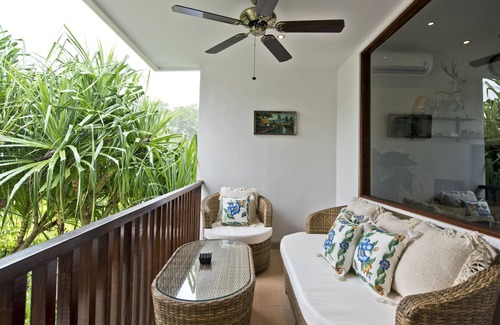 The private garden and terrace of this villa is made for sunbathing and relaxation, with a small plunge pool overlooking to the jungle and river.
