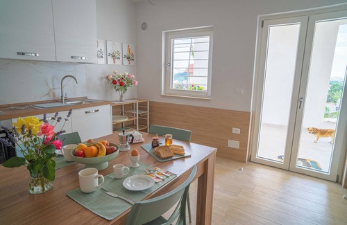 Your private villa to relax and escape the city: Villa Bianca is a nature retreat, perfect for any season. Ideal for families and couples seeking peace and quiet, it offers breathtaking views, a herb garden, play areas for children and dogs. Located in Irpinia along the “Wine Route,” it is surrounded by local festivals, unspoiled landscapes, hiking trails, vineyards, and iconic destinations such as the Amalfi Coast, Pompeii, Naples, and Lake Laceno. Villa Bianca is a nature retreat opening in August 2025, ideal for those seeking peace and beauty in every season. The fully equipped kitchen is ready for you to prepare meals to enjoy outdoors, thanks to the covered al fresco dining areas. The master bedroom offers a unique atmosphere with a star projector on the ceiling and direct access to a panoramic terrace—perfect for sunset aperitifs. There is also a cozy second bedroom and a living room with TV. Outside, you’ll find courtyards, a well-kept garden, a herb garden, a small woodland with a hammock, and plenty of space for children and pets to play freely.