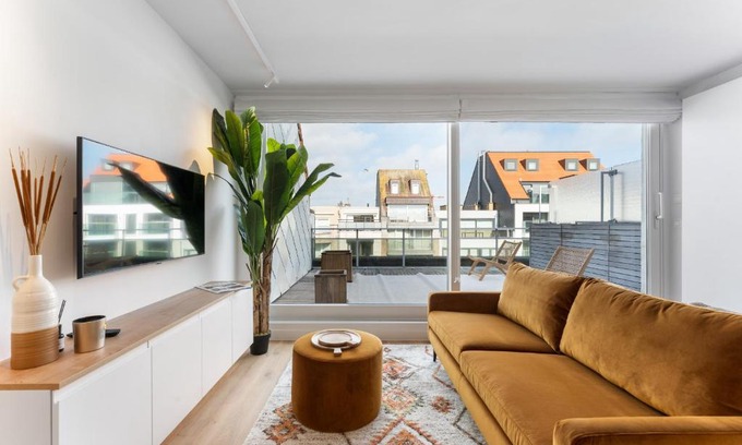 Romantisch luxe penthouse met 2 zonneterrassen is located in Knokke-Heist, just 1.9 miles from Duinbergen Train Station and 7.5 miles from Zeebrugge Strand Train Station. Guests staying at this apartment have access to free Wifi and a balcony. The property is a 4-minute walk from Knokke Beach and within 1.8 miles of the city center. Featuring a terrace and city views, the spacious apartment includes 1 bedroom, a living room, flat-screen TV, an equipped kitchen, and 1 bathroom with a walk-in shower. Towels and bed linen are available in the apartment. For added privacy, the accommodation features a private entrance. Basilica of the Holy Blood is 12 miles from the apartment, while Belfry of Bruges is 12 miles from the property. Ostend - Bruges International Airport is 32 miles away.