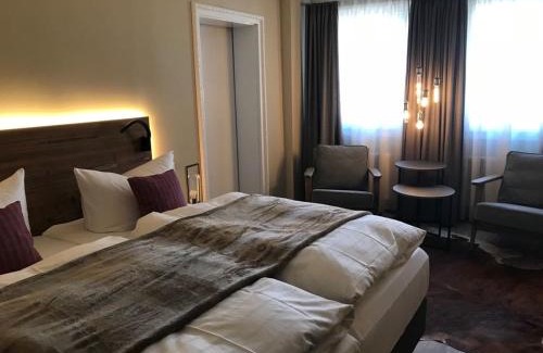 This hotel is located in Uslar, surrounded by the charming landscape of the Weserbergland region. Occupying an impressive timber-framed building, the hotel lies on a pedestrianized area within the town center, directly opposite the town hall. Following extensive renovation and extension work some 10 years ago, it offers a modern spa area overlooking an attractive park with a romantic pond.