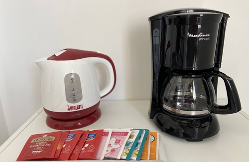 Rome Open City Home was renovated and completely refurbished in the furnishings at the beginning of 2023 to make it even more welcoming and comfortable. The apartment has a bedroom with a standard double bed, desk, chair and wardrobe; a living room with sofa bed, another smaller sofa bed, dresser and flat screen tv with cable channels; a kitchen equipped with utensils, plates, glasses, crockery and pans, induction hob, microwave oven, electric kettle and coffee machine; bathroom with shower, toilet and bidet, equipped with hairdryer.
