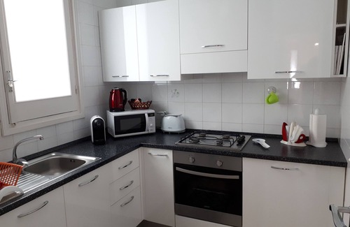 The apartment offers all the comforts that your home may have: smart TV, washing machine, electric and microwave ovens, air conditioner (split to the living areas, air dryer, iron with ironing board, coffee machine, toaster, tea kettle, WI-FI connection, fan, a courtesy set of linen and towels and a welcoming kit.