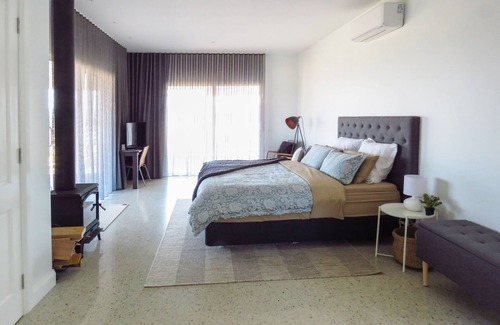 In the picturesque Macedon Ranges is Rooks Edge, an 84-acre property offering a contemporary upmarket Bed & Breakfast with three rooms for couples or groups. Ten minutes from Gisborne (40 minutes from Melbourne airport), the deluxe rooms are designed to take in the sensational mountain views and glorious sunsets. Focusing on peace and privacy, this third of three rooms is perfect for a luxury getaway. Alternately, with twin room configuration this makes the perfect location for groups who want to get together; hike, cycle, bird watch or crafters. Entry to all three rooms is via a common entrance that holds a lounge, small library and kitchen.
