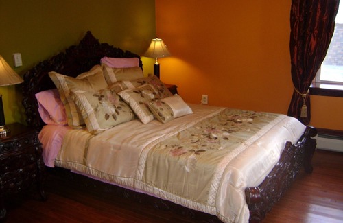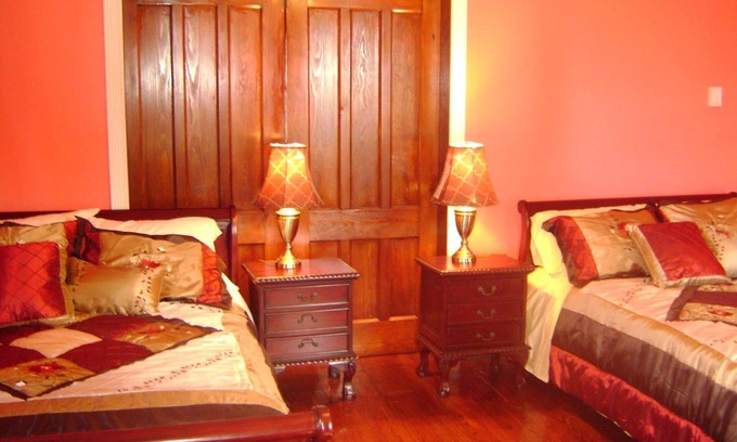 Your stay at Room #2 comes with an array of exceptional amenities that cater to your every need. Enjoy spacious accommodations featuring real mahogany furniture, high-quality linens, and a variety of modern comforts including flat-screen TVs, cable, WiFi, and even a rejuvenating sauna and jacuzzi. Indulge in a delightful breakfast made from locally grown ingredients and take advantage of our swimming pool and ample parking. Perfect for accommodating groups, this location is ideal for wedding parties looking to unwind before or after the ceremony.