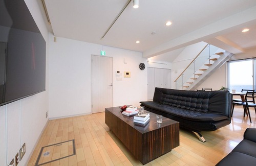 The luxurious rooms are surrounded by chic blackbased interiors and modern interiors creating a hideawaylike atmosphere that will make you forget the hustle and bustle of the city from the moment you step in The spacious sunny living room measures 23 tatami mats 37 m2 and has a high vaulted ceiling creating an open space Equipped with the latest home appliances equipment and amenitie
