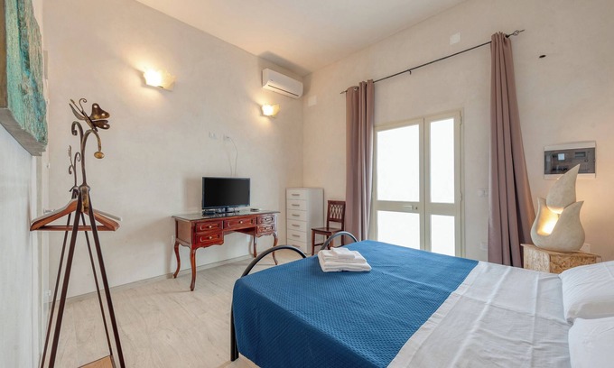 The 45 square metre room consists of a living room with a bunk bed, a bedroom and a bathroom and can accommodate 4 people. Additional amenities include high-speed Wi-Fi (suitable for video calls) with a dedicated workspace for home office as well as a TV. This accommodation does not offer: air conditioning. Possibility to take on-site mini-courses related to ancient Salento crafts with hands-on demonstrations (stonemasonry on stone, papier-mâché, terracotta, and artistic drawing)