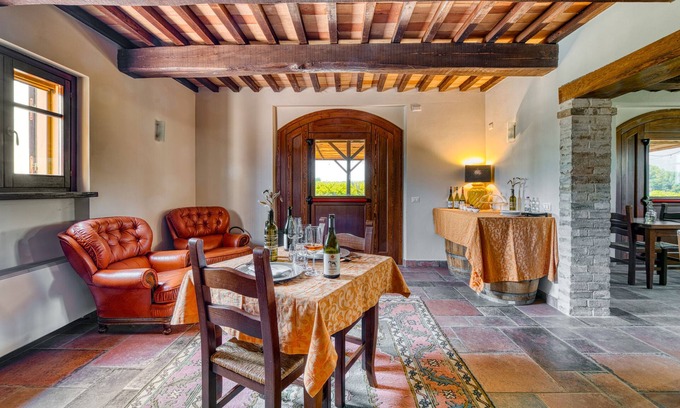 The property offers a splendid view of the vineyards and Umbrian hills, private Wi-Fi, air conditioning, TV, and a dedicated workspace for your convenience. Breakfast is included during your stay.