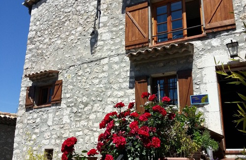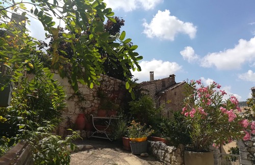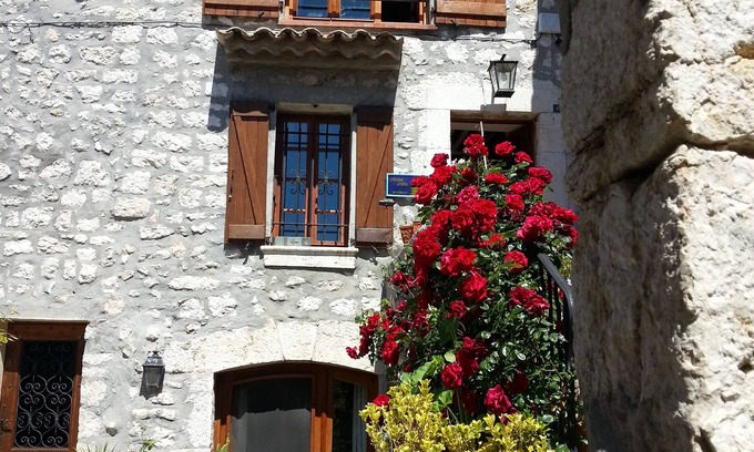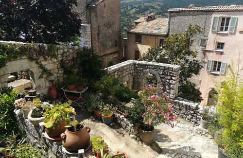Small cocoon for lovers in a high family home in the heart of Coursegoules pretty medieval village and preserved, 1000 meters above sea level, thirty minutes from the coast and ski resorts.