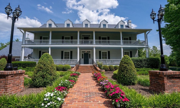 Step back in time, but leave no modern amenity behind. This Charleston style Southern mansion, located just one mile from Pine Manor, has five bedrooms, an old fashioned 5 bed attic bedroom, and 4.5 baths, the 10,000 square foot Oak Manor is the second largest guest house at Pine Manor Estates. It sits on over 10 acres with two private stocked lakes, private movie room, library and man cave with poker table. Enjoy warm Southern Illinois afternoons and cool southern cocktails on the grand porch, time seems to have a way of just slowing down to the perfect pace at Oak Manor.