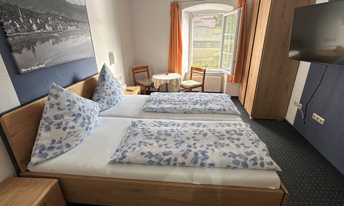 Our modernized non-smoking double rooms offer enough space for 2 people. A double bed with separate mattresses, a bathroom with shower and toilet, a seating area, free Wi-Fi and a smart-TV. Our guest rooms are located directly on the Moselle and offer a wonderful view across the Moselle valley to the Metternich castle ruins in Beilstein. Start after a relaxing night and already included in the price Princely breakfast to your discovery tours in the Moselle region. Use the guest ticket, which you get from us at no extra charge, with this you can use public transport in our district free of charge and get discounts at many sights in our region.