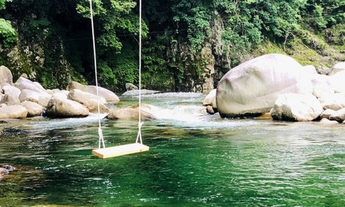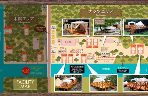 A glamping facility located along the Kanzaki River mountain stream rich in nature