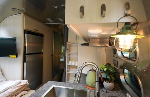 We have a stylish interior with plenty of cushions and a focus on accessories You can relax in a comfortable tent even after the BBQ There is a private BBQ space outside the tent / This is a roomonly plan exclusively for Airstreams trailer houses