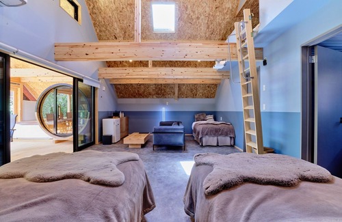 Chec / A cottage equipped with a barrel sauna jacuzzi BBQ grill and screen theater Up to six Simmons beds can be accommodated and two sets of futons can be provided in the loft
