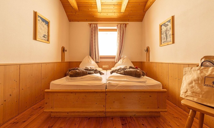 The Rossalm Classic double room is located on the Plose near Brixen and offers direct access to the ski slopes and hiking area. The 40 m² accommodation consists of two separate bedrooms and a bathroom, and can accommodate up to five people. Amenities include high-speed Wi-Fi (suitable for video calls) with a dedicated workspace for your home office, a TV, towels, bathrobe and sauna towels. You also have access to a shared sauna and a communal outdoor whirlpool. A baby cot and a high chair are available on request.