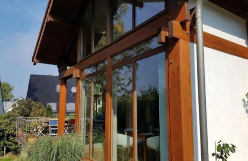 We live here with 1 child on the upper floor. The house is located directly on the Königsforst. Our two older children have now moved out to study. Since our house is very large, we rent a complete floor with 2 bedrooms for 4 people with bathroom and terrace. Separate access to the garden. You can only book 1 room. The large, open kitchen with American fridge and the living room can of course be used with us.