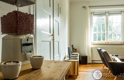 The Zimmerblick apartment is on the first floor. The apartment has been furnished with great attention to detail and is stylishly renovated. There is a fully equipped kitchen, a bathroom with bathtub (shower, curtain, grab handles) as well as three bedrooms and a spacious living room. Generous seating in the living room and the fireplace provide a cozy atmosphere and relaxing evenings.