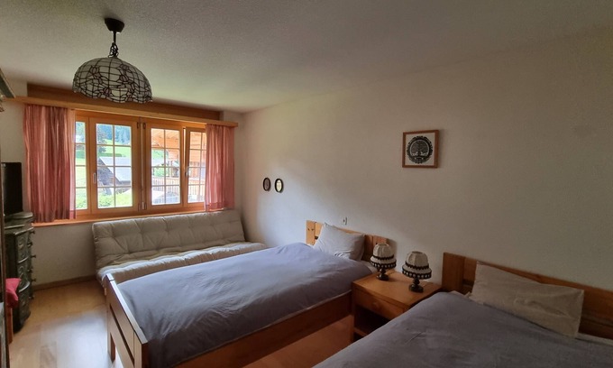 Room with extra-large double-bed, cable TV, private bathroom, organic breakfast, | Bed & Breakfast in Lauenen