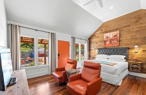 Room with One King Bed and Shared Patio is located in Comfort. Room with One King Bed and Shared Patio provides accommodation, featuring Pet Friendly, Security/Safety, Child Friendly, among other amenities. This Cabin features Pet Friendly, Security/Safety, Child Friendly, to make your stay a comfortable one.