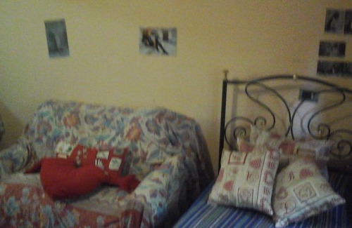 Room with two single beds in an elegant apartment, fine finishes, terrace, private bathroom, TV, heating and air conditioning, free parking, served by bus to reach the city center in 7 minutes, sea and mountains. Possibility to use the terrace on summer evenings, quiet environment, apartment with a single bed and a sofa bed, near the ring road and highway entrance, washing machine, microwave oven