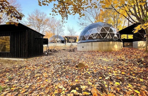 Currently two domeshaped tents an associated gazebo and a private sauna are available for use on the approximately 3300m2 site surrounded by lush nature