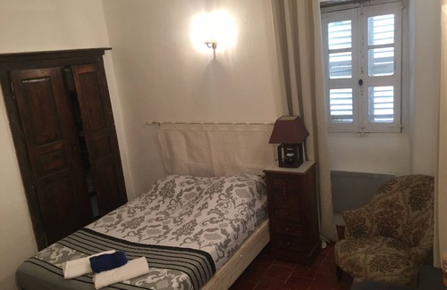 Rent a traditional room of the 19th century with shared bathroom located on the lower floor with another room and kitchenette fitness area with coffee maker kettle toaster sink fridge freezer and microwave. parking, breakfast on the spot.