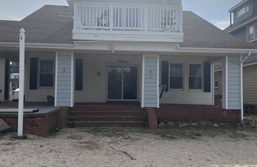 The beach is in your backyard at this historic beachfront multiplex! This listing is for the main ground-floor unit with large back deck and 2 parking spots. It features a large living and dining room, full kitchen, 2 bedrooms, 2 full bathrooms, and a game room with foosball table and classic arcade machine with hundreds of games. Smart TVs in every room, central heating and air, new memory foam mattresses, laundry room w/ washer and dryer, and all basic necessities for a perfect vacation.