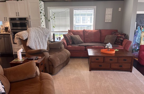 Across the street from Oneida Lake with lake rights and a PRIVATE dock for you to enjoy all sort of water activities. You can keep a row boat or canoe tied to the dock during the day weather permitting and at night it can be pulled up on shore. If you are bringing a motor boat you have to take it out of the water overnight. The State Boat Launch (no fees) is 2 mile from our house. We have a big area for keeping boat trailers. Perfect for that family staycation, relaxing getaway or just plain ole fun in the sun! Plenty of parking and lots of bedrooms space so that you can share special times and occasions with friends and/or family. Perfect location for all the 4 seasons that NY has to offer. It’s a 3 bedroom 2 bath home. The master bedroom has a king bed with a adult size cot but plenty of room to easily fit 3 or more air mattress. The master also has a profession elliptical. The downstairs has two good size bedrooms one with a queen size bed and a queen air mattress and the other has a full size bed with plenty of room for an air mattress. Each bedroom has a large flat screen TV. This is a very KID FRIENDLY house. You will have more than enough space to feel comfortable and relax.