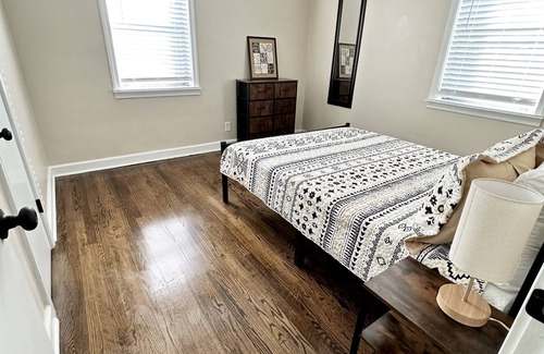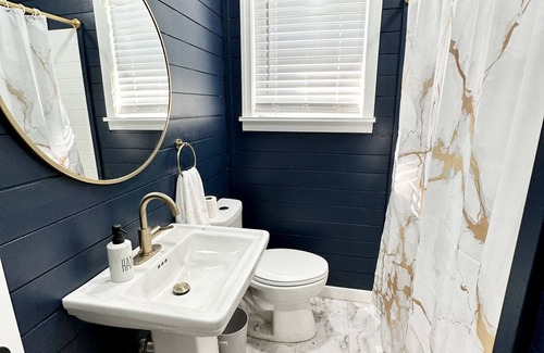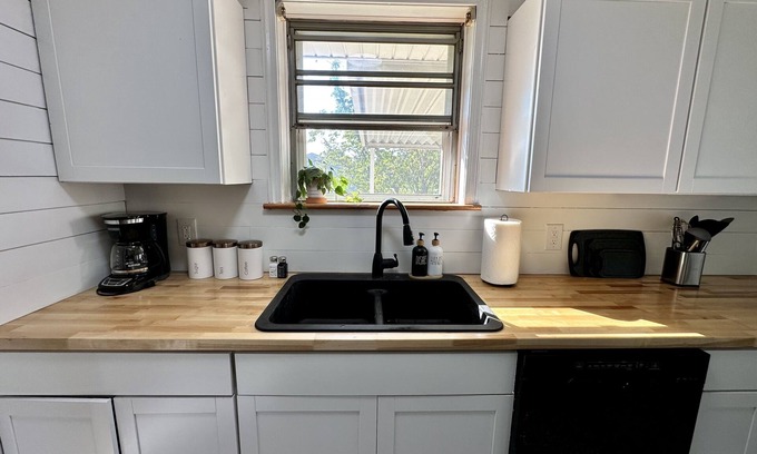 This recently renovated home has 3 bedrooms and 2 full baths and a fenced-in backyard. Enjoy the games and kids’ toys in the sunroom, or use the desk for study or work with fast, reliable WiFi. The modern kitchen has shaker cabinets and beautiful butcher block countertops with all the cooking necessities.